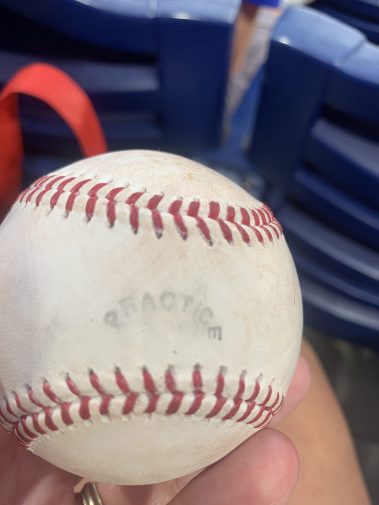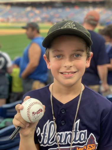 - Another employee (thank you, Charlie Culberson!) took the ball down during warmups and got it signed.